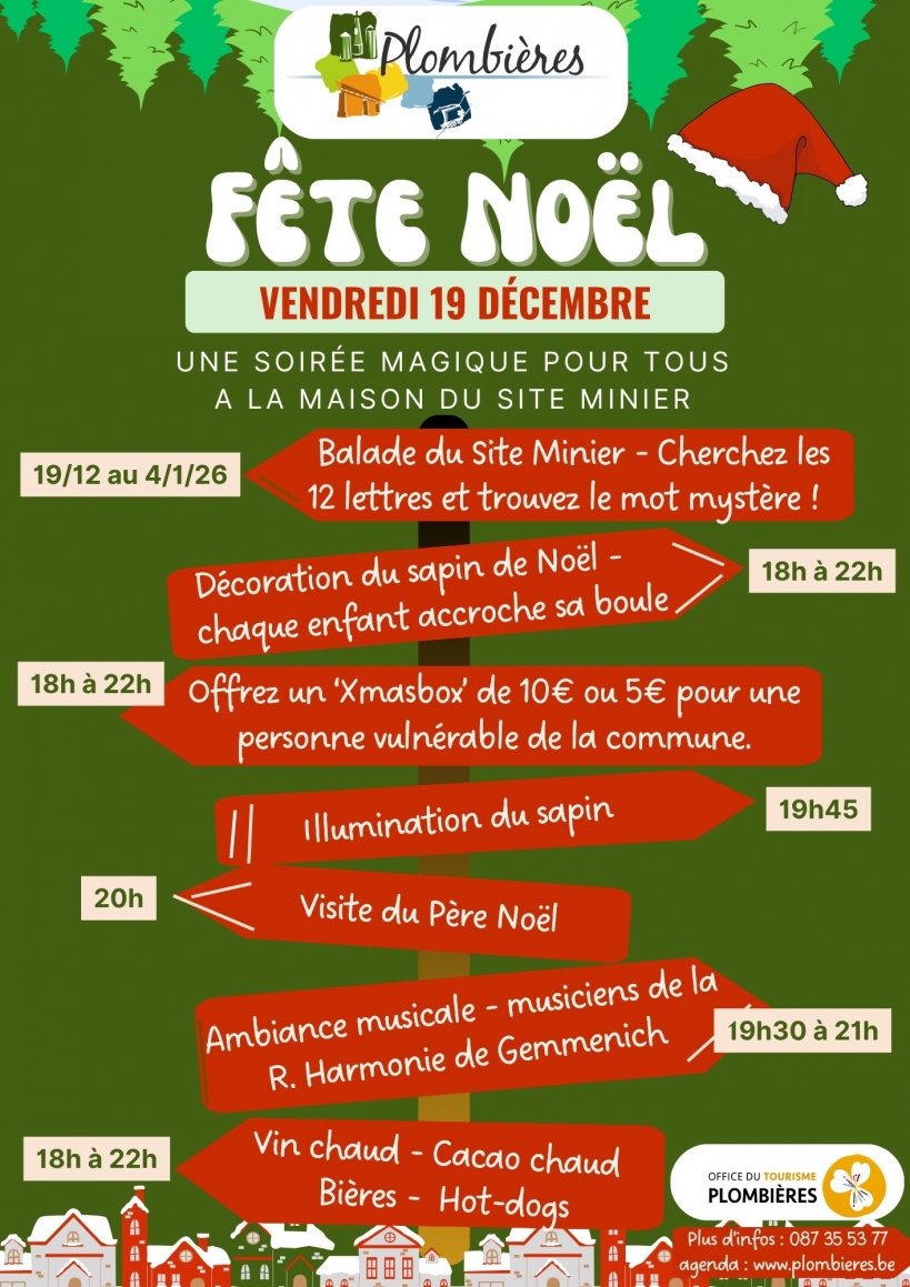 *Dès 18h, et jusqu’à 22h, tous les enfants et les adultes sont invités à venir accrocher leur boule de Noël au sapin de Noël installé devant la Maison du Site Minier de Plombières. Venez nombreux pour rendre notre arbre de Noël festif, coloré, somptueux !