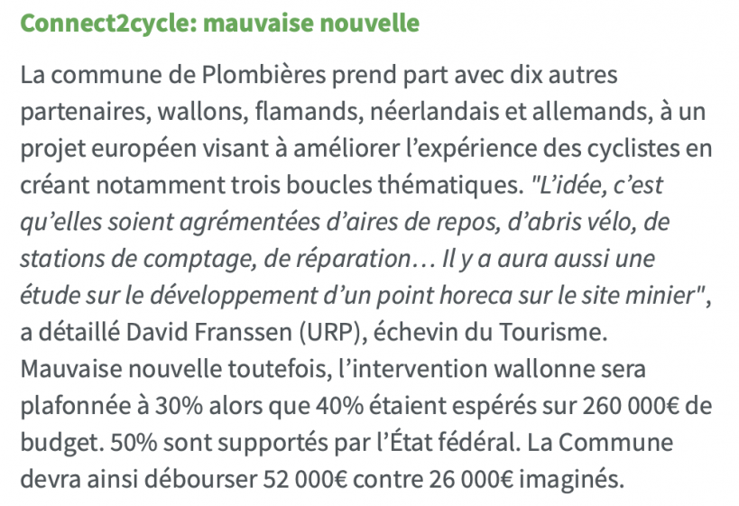 Intervention wallonne limitée à 30 %