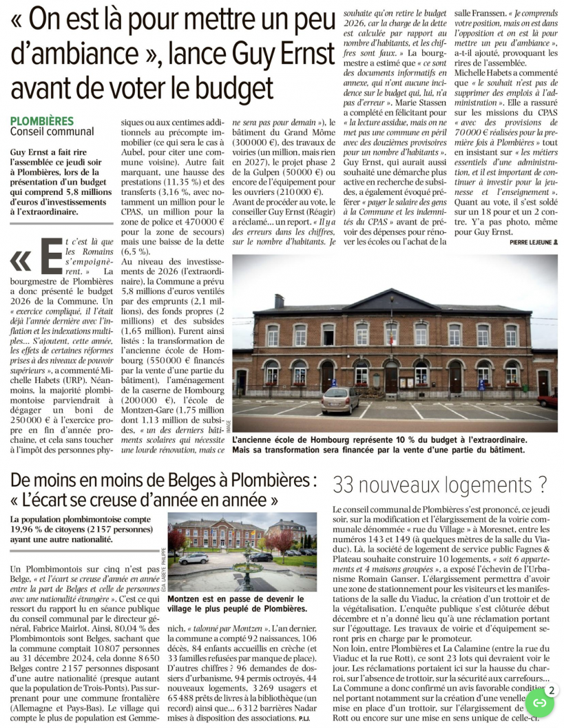 Une page de PIERRE LEJEUNE dans L'AVENIR - LE JOUR du 20 décembre 2025