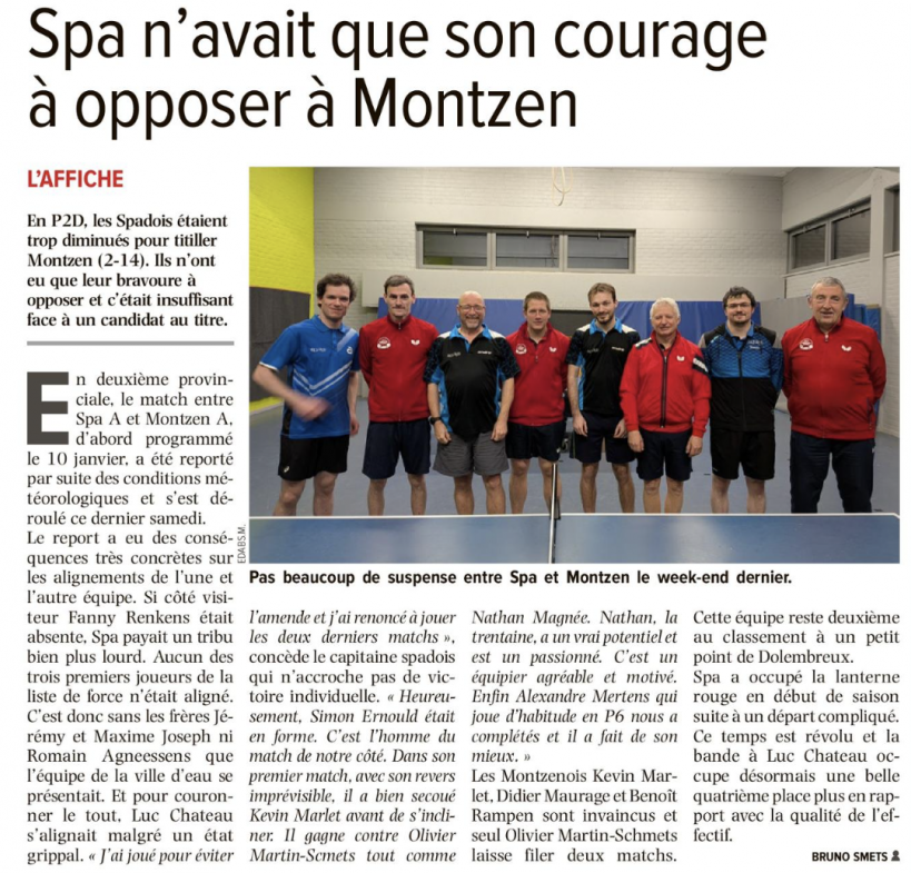 Spa insuffisant face à Montzen