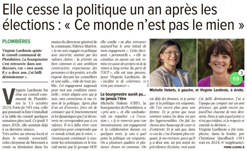 Une information de PIERRE LEJEUNE dans L'AVENIR - LE JOUR VERVIERS du 7 mars 2026.
