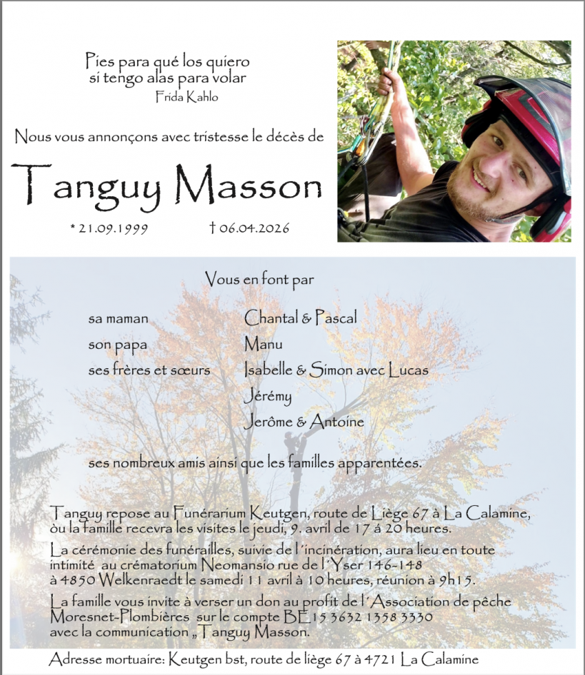 14h56 09 avril 2026 Décès de Tanguy Masson, 26 ans, employé au service technique de Plombières Tweet Lien permanent Catégories : Accident de la route, La Calamine 0 commentaire