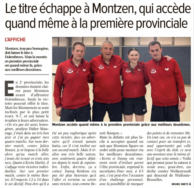 Montzen en première provinciale